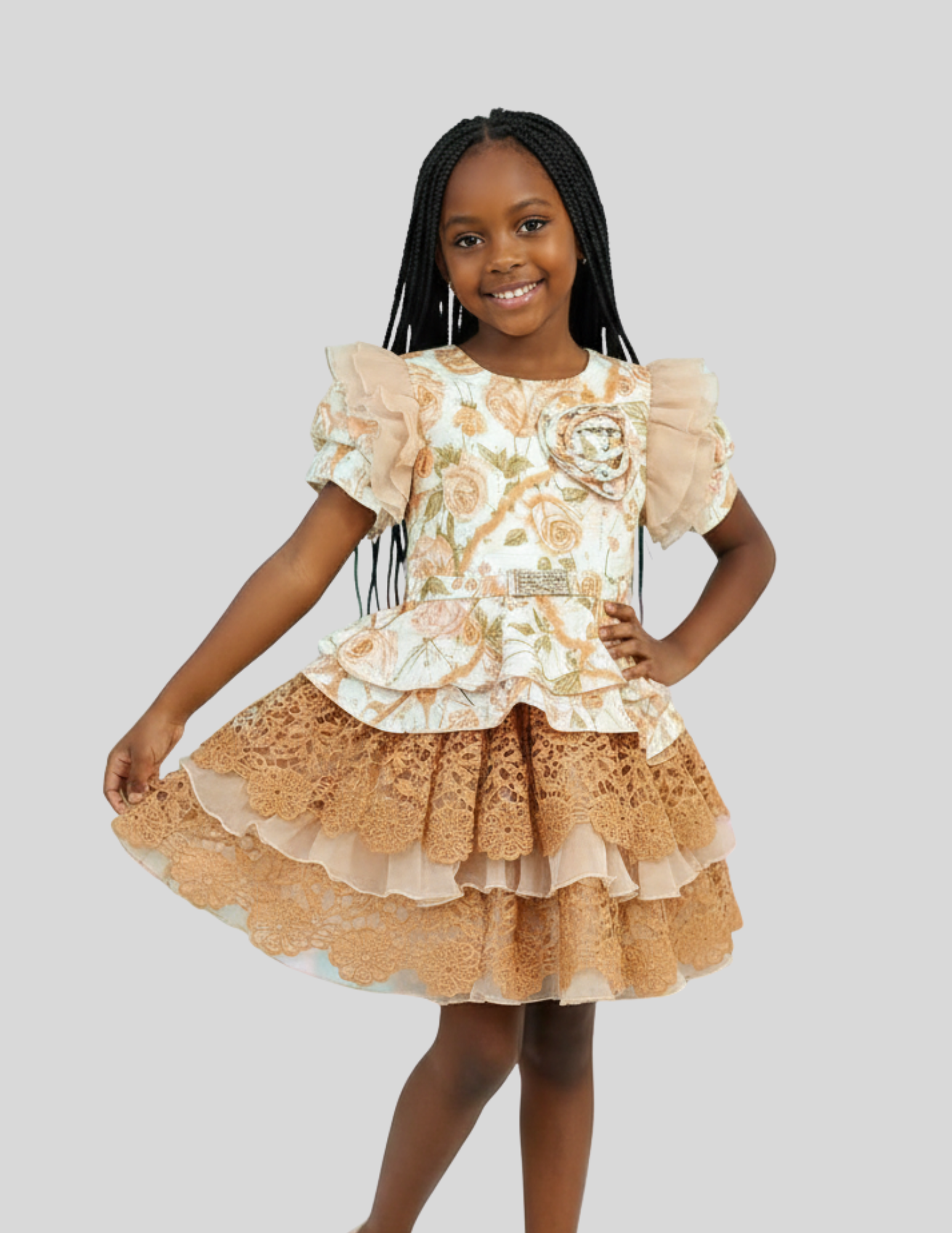 Designed to make every little moment feel special, this elegant dress is a beautiful blend of charm, comfort, and timeless style. Crafted with care for growing kids, the gown features a graceful silhouette that flows softly with every step, creating a magical look your child will love.